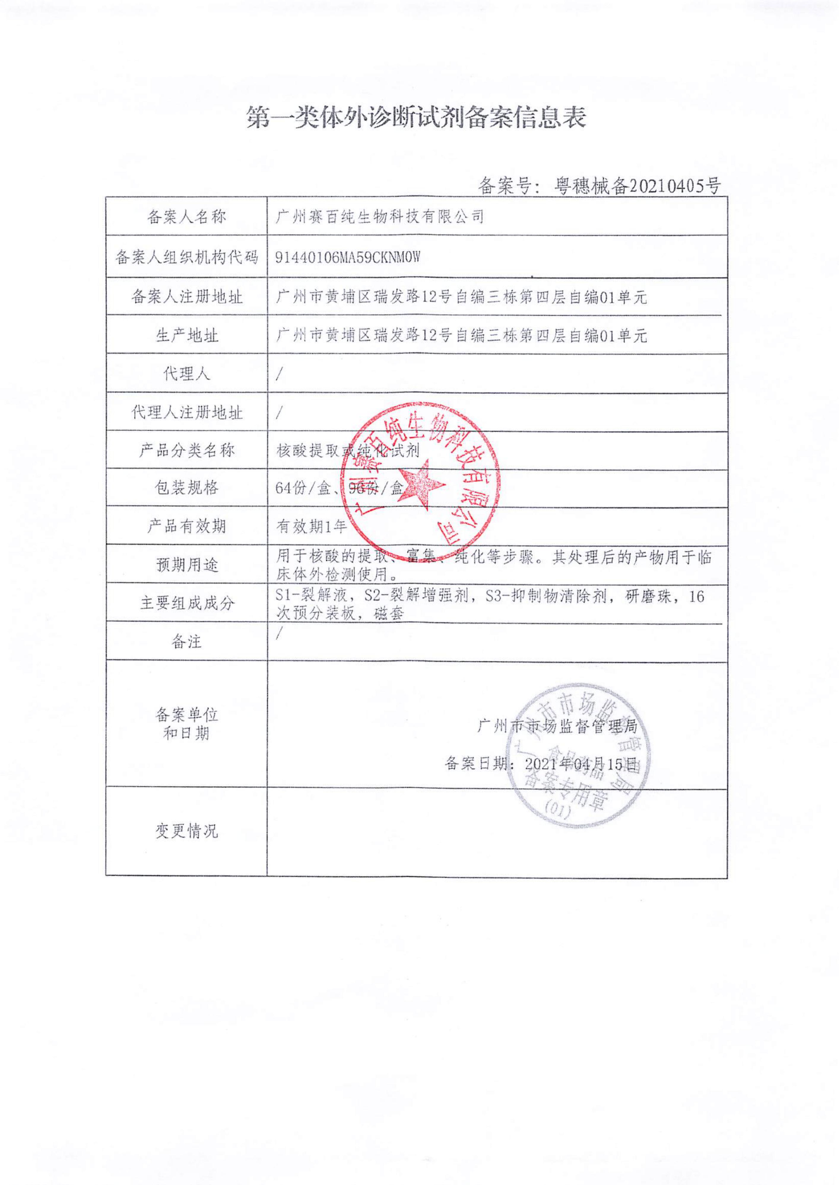 第一類體外診斷試劑備案信息表