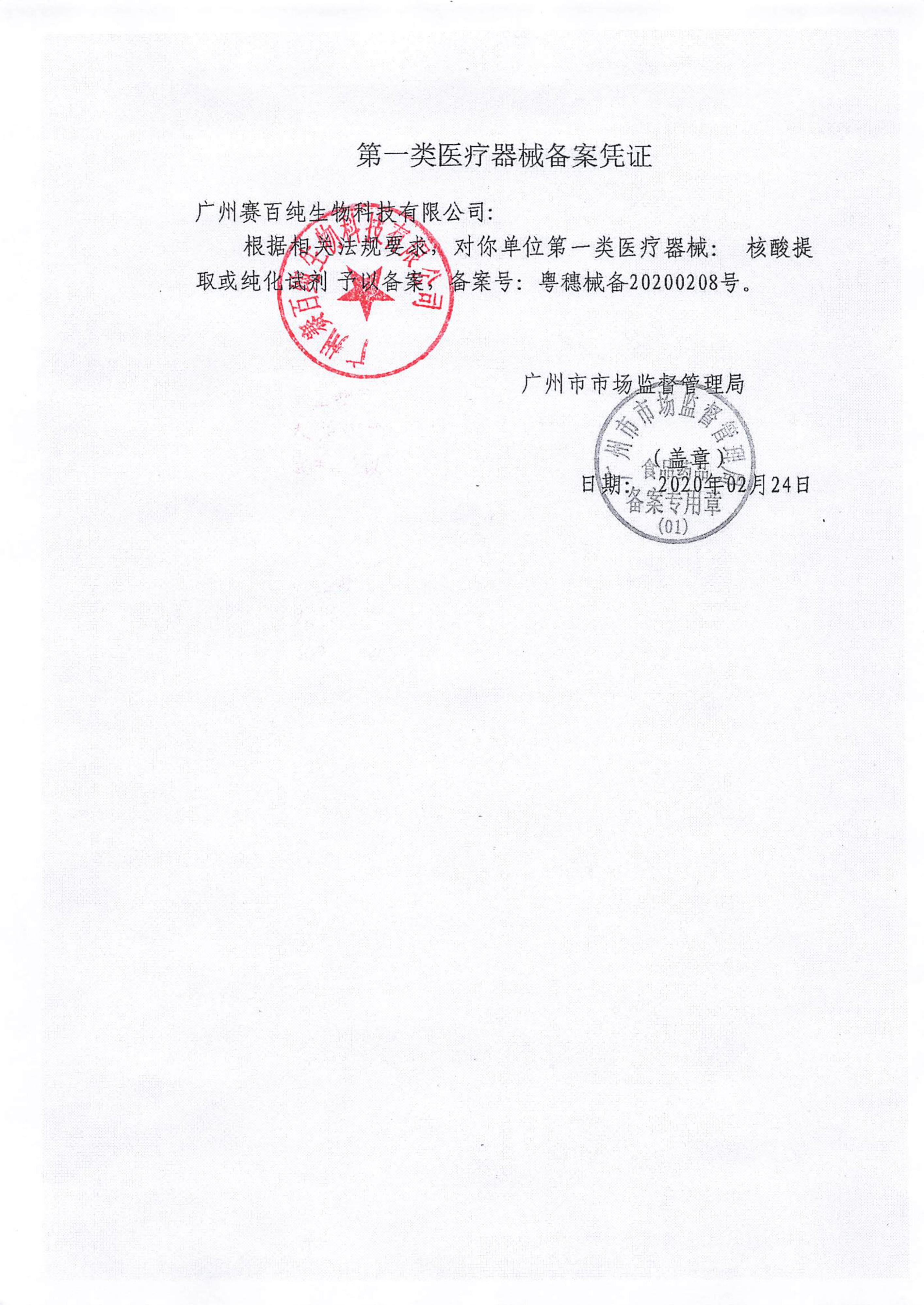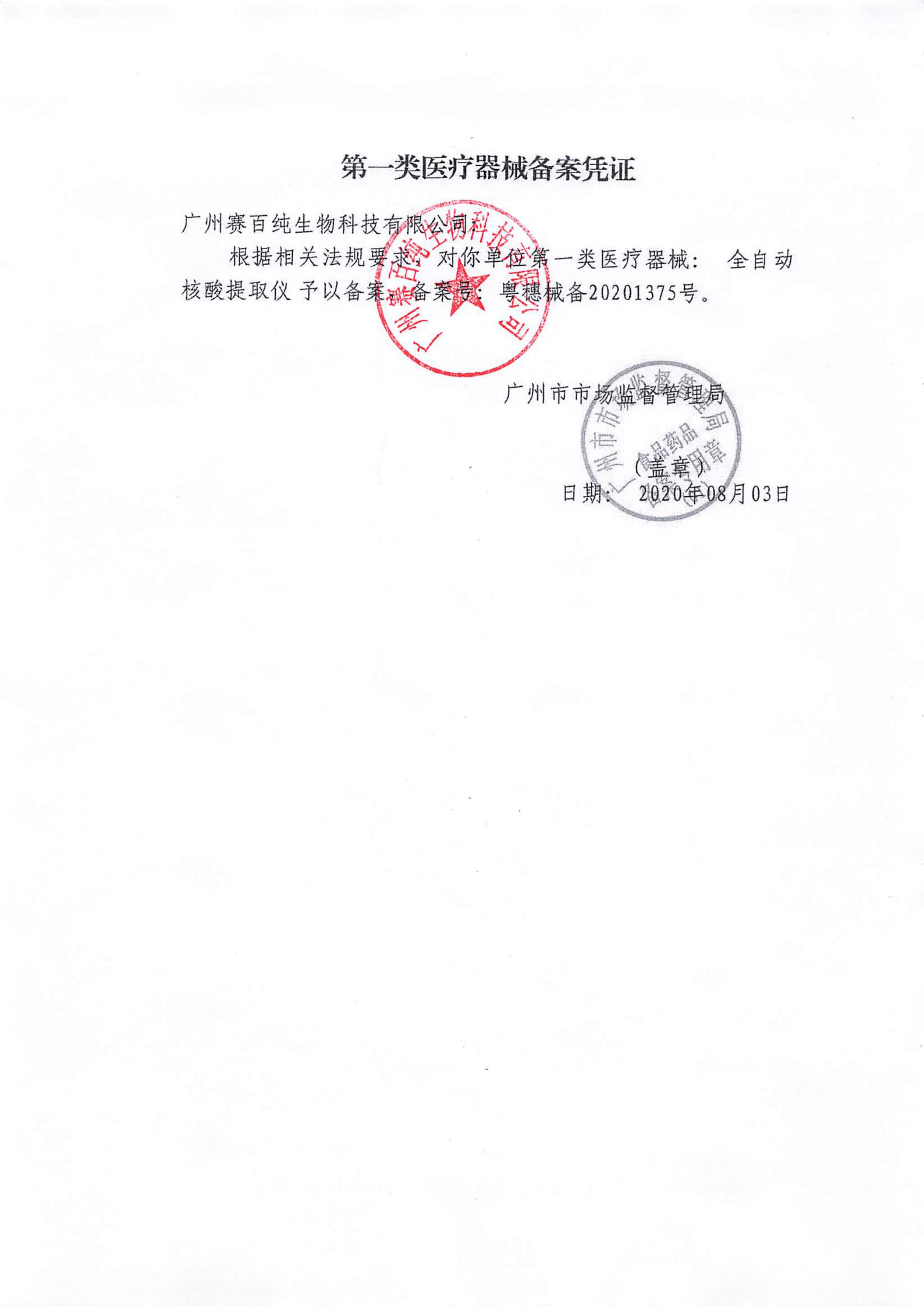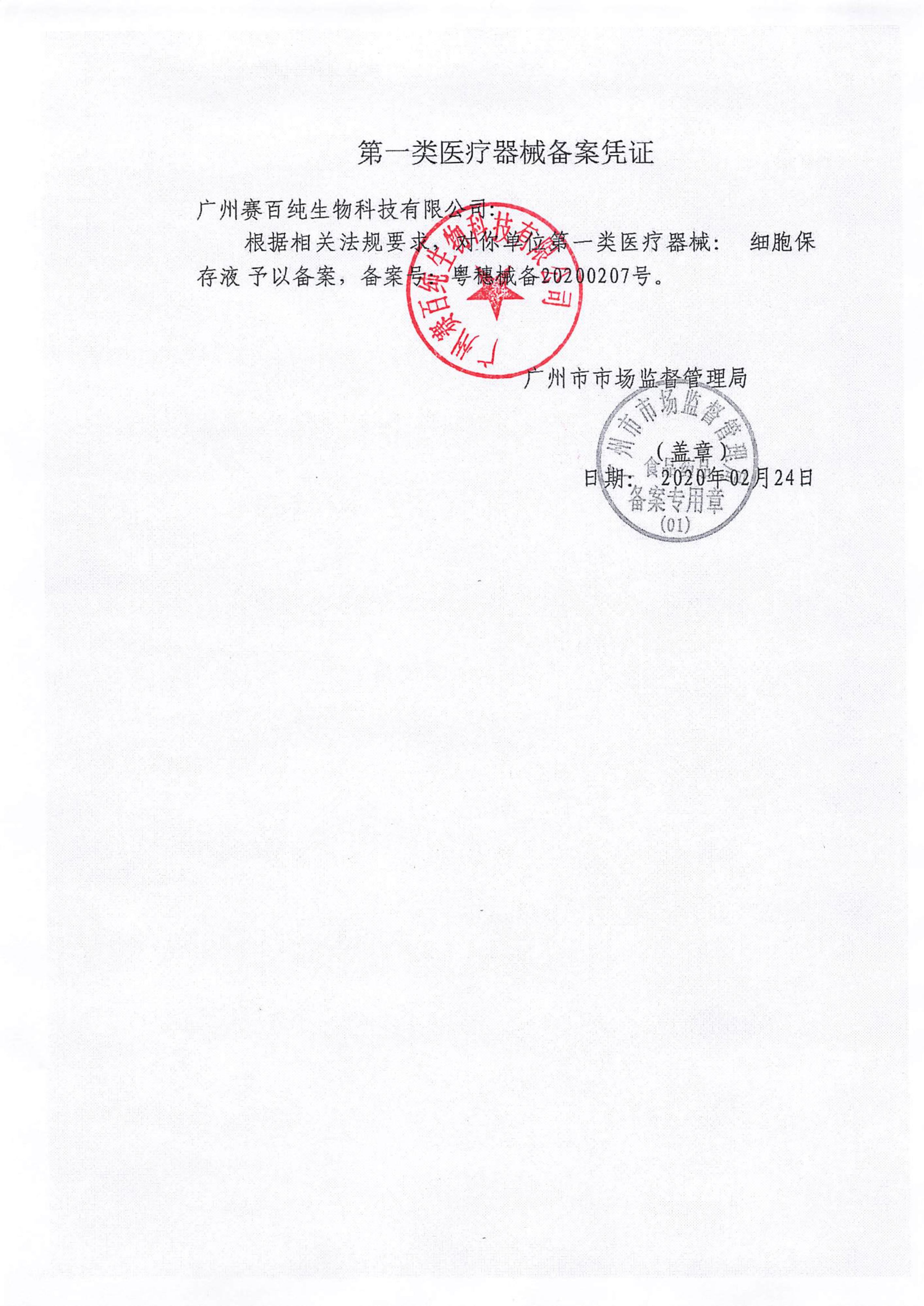 第一類醫療器械備案憑證