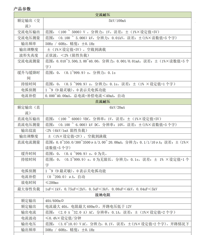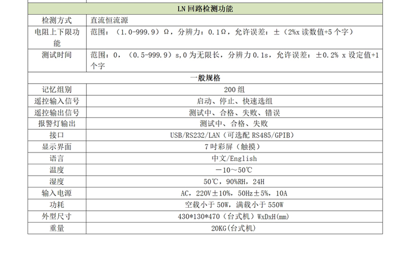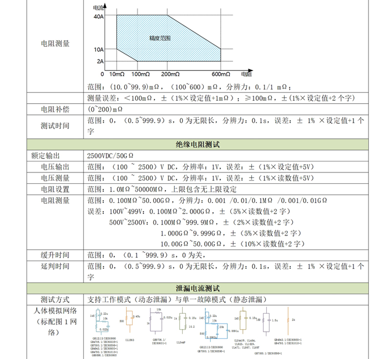 d)接地阻抗:40A/600mΩ,滿足醫(yī)療器械行業(yè)R<100mΩ的測試要求;