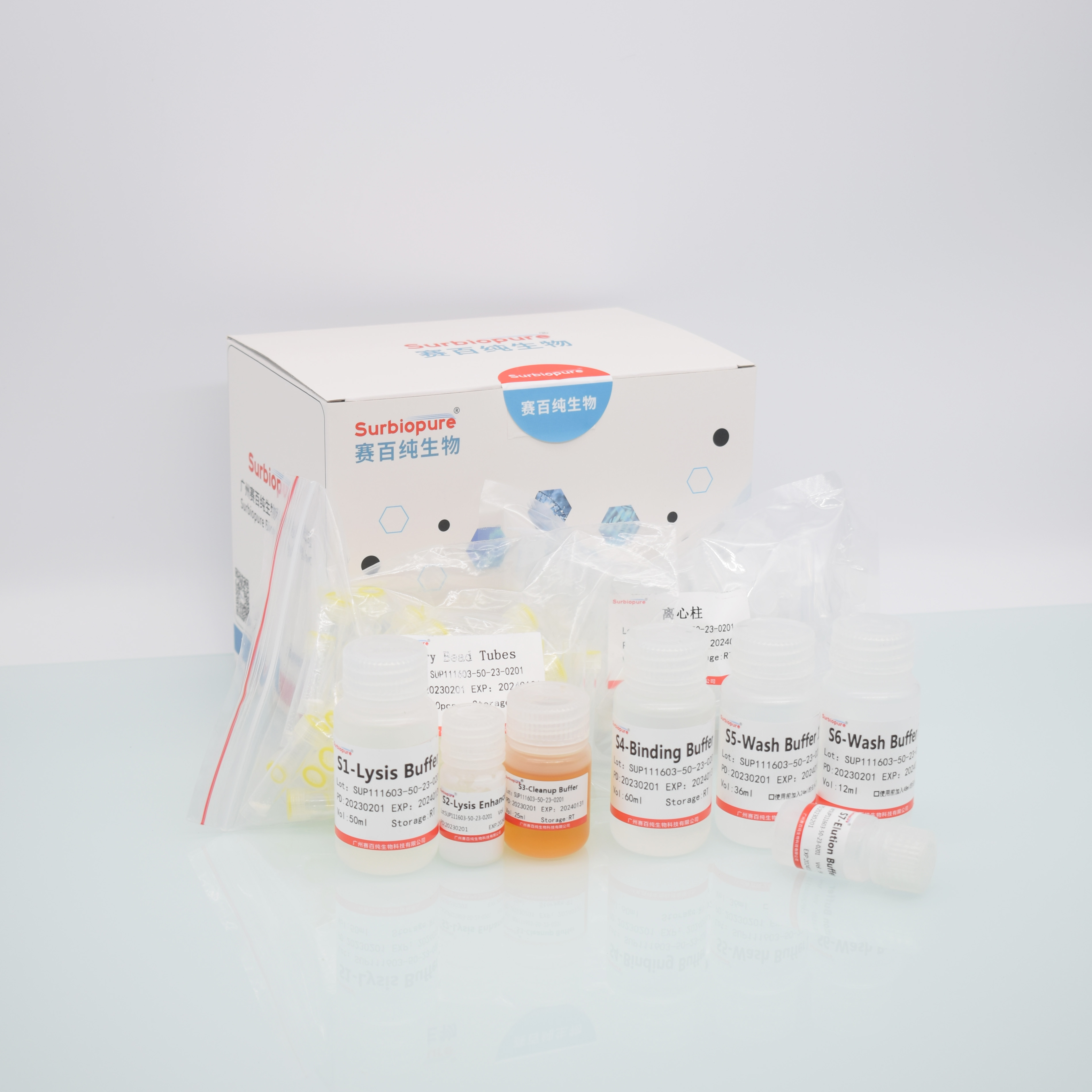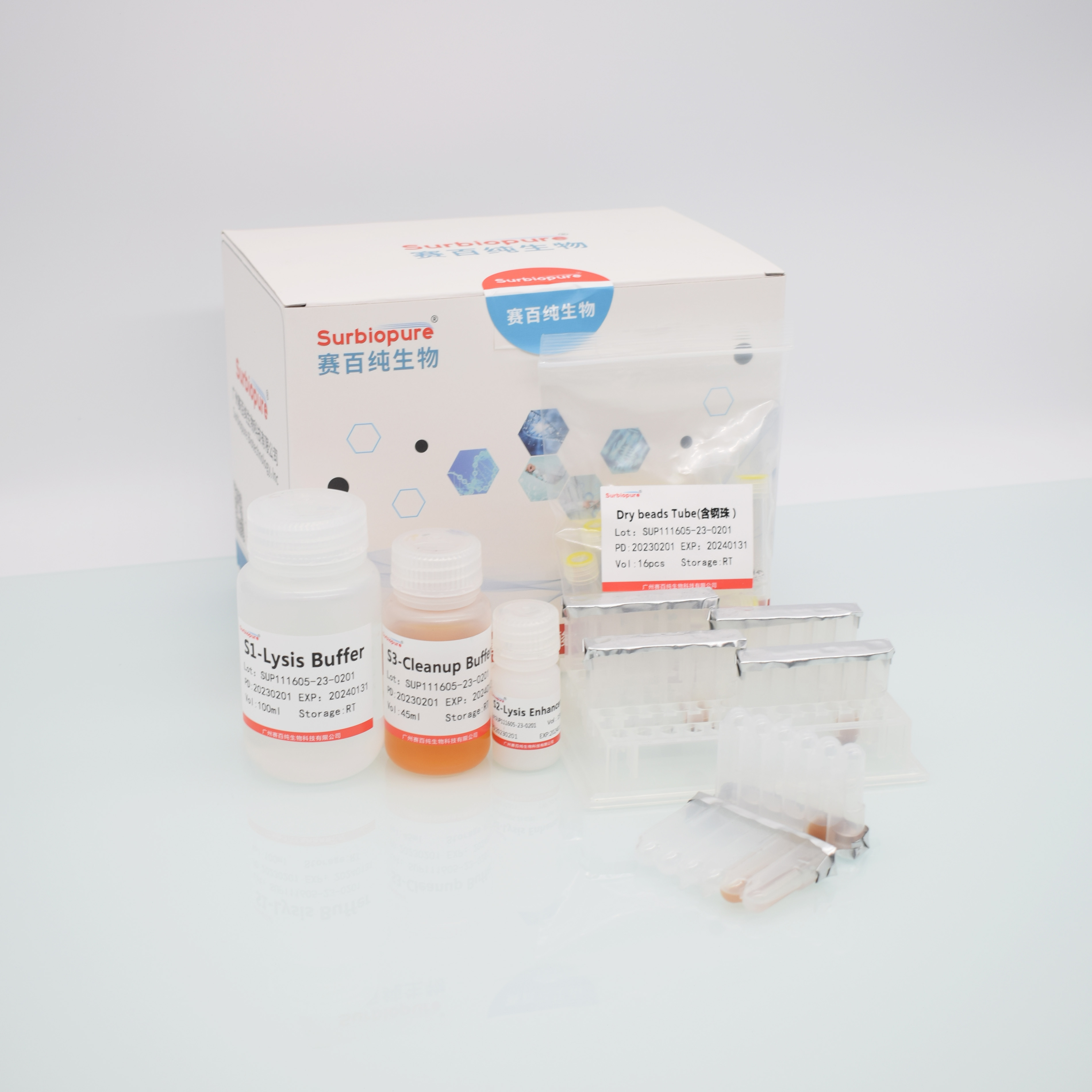 【產(chǎn)品名稱】糞便核酸提取試劑盒 英文名稱:nucleic acid extraction kit for faeces 【包裝規(guī)格】40份/盒、60份/盒、64份/盒、96份/盒 【預(yù)期用途】 本試劑盒是專門從糞便、肛拭子等樣品中病毒、細(xì)菌DNA的提取和純化而設(shè)計(jì)的。試劑盒采用磁珠法純化技術(shù),并結(jié)合獨(dú)創(chuàng)的腐殖酸吸附劑技術(shù),適合于從各種環(huán)境拭子、土壤、糞便、尿液病毒和細(xì)菌微生物宏基因組的篩查及NGS檢測。目前廣泛應(yīng)用的例子:土壤,糞便,尿液,肛拭子;試劑盒能夠從此類樣品中提取高產(chǎn)量高純度的總DNA 。 【實(shí)驗(yàn)原理】 試劑盒是采用高結(jié)合力的納米磁珠為基質(zhì)。磁珠在高濃度離子化劑(如鹽酸胍或異硫氰酸胍)條件下,可通過氫鍵和靜電等物理因素吸附核酸而形成磁珠核酸復(fù)合物,而蛋白質(zhì)或其它雜質(zhì)不被吸附而去除。吸附了核酸的磁珠經(jīng)洗滌去除蛋白質(zhì)和鹽,最后可以用低鹽緩沖液(如Buffer TE)或水,洗脫出納米磁珠上吸附的核酸。得到的核酸純度高,可直接用于各種下游實(shí)驗(yàn)。此外,S3-抑制物清除劑溶液是我們獨(dú)創(chuàng)的腐殖酸吸附劑,該吸附劑可選擇性吸附DNA樣品中的腐殖酸等抑制因子,提高DNA純度。111601
