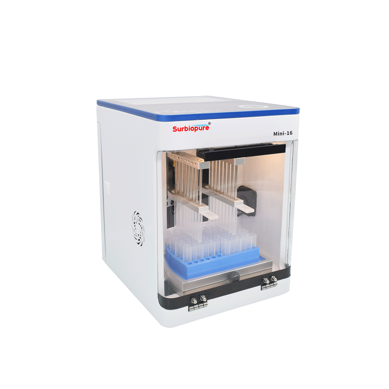 Mini-16全自動核酸提取儀采用磁珠分離技術,利用2.2ml深孔板、2.2ml試劑條、8聯磁棒套;搭配不同種類的磁珠法核酸提取試劑盒,最多可一次同時操作1-16個樣本,儀需9~45分鐘就可快速提取樣本中的DNA和RNA。 本系統通量靈活,可實現不同需求量的樣品提取,使用范圍廣;每次可同時提取1-16個樣品,配合單條試劑可實現1-8個樣品的任意通量同時提取;搭載7寸彩色觸控一體化操作界面,可自由編輯提取程序;配置負壓排氣系統和紫外燈消毒系統,避免氣溶膠污染,安全可靠;尤其適合零散樣本的現場核酸提取,配合實時熒光定量PCR系統,可輕松實現戶外現場樣本的即時檢測。
