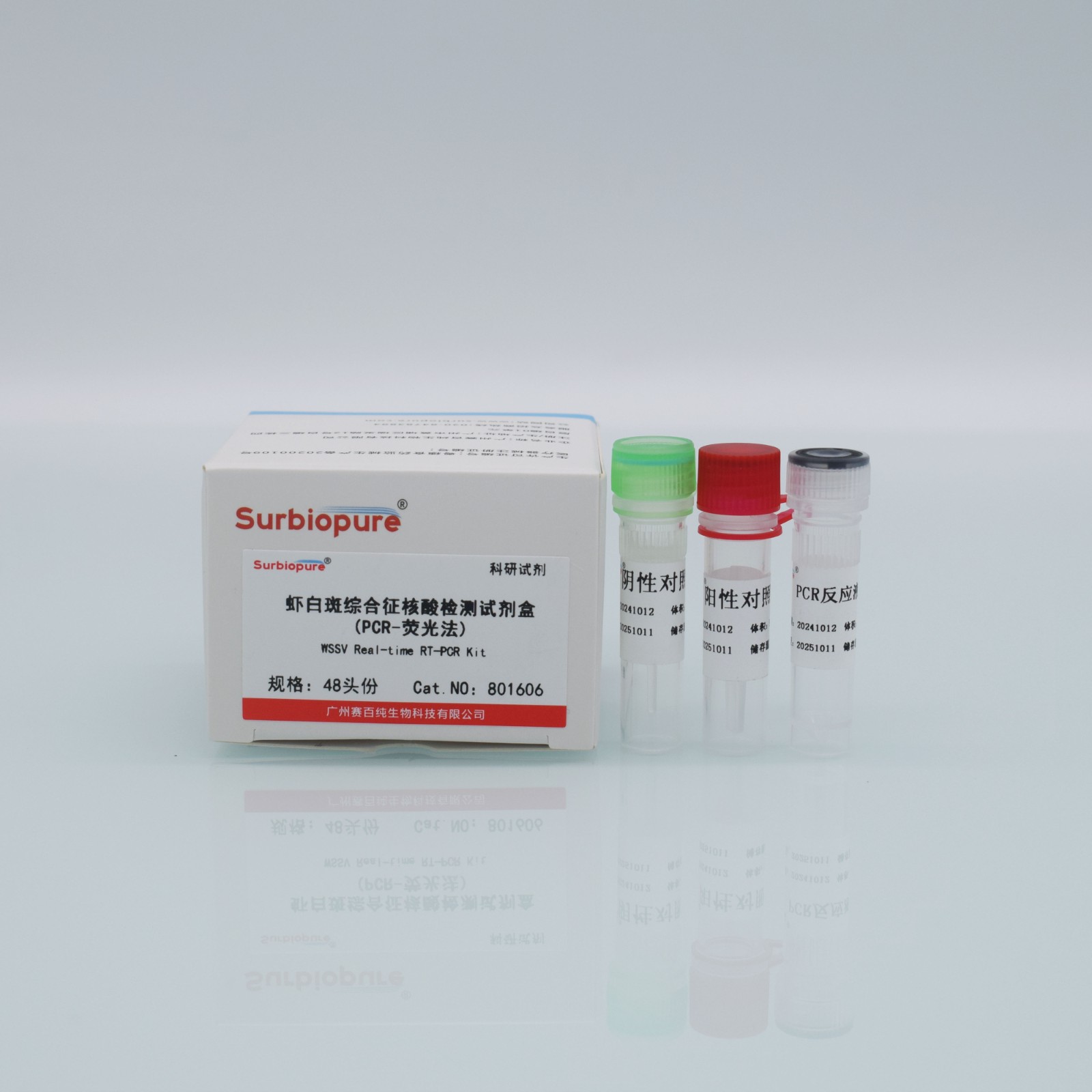 【產品名稱】通用名稱:蝦白斑綜合癥核酸檢測試劑盒(PCR-熒光法)英文名稱:WSSV Real-time PCR Kit【包裝規格】48頭份/盒 【預期用途】本品適用于對蝦、養殖水體中、養殖土壤中、飼料等中蝦白斑綜合癥病原體的快速檢測。【檢驗原理】本試劑盒利用實時熒光PCR檢測技術,采用蝦白斑綜合癥(WSSV)的一對特異性引物和一條特異性熒光探針,實現對對蝦、養殖水體中、養殖土壤中、飼料等中蝦白斑綜合癥病原體的快速檢測。
