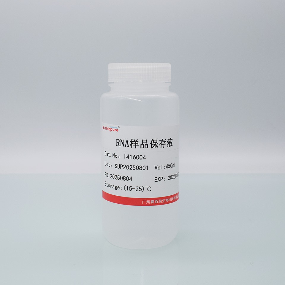 適用于動物組織(心,肝,腎,肌肉,睪丸,腦,脾等)、培養細胞、RNA 病毒、果蠅、細菌、白細胞、全血、一些植物組織等。RNAlater 是一種水相的,無毒的組織保存液體,可以迅速滲入新鮮組織細胞的胞漿中,在非凍狀態下原位穩定和保護細胞內的RNA。取下組織薄片后立刻浸入RNAlater保存并不影響將來提取RNA的質量和數量。RNAlater消除了RNA樣品需要立刻處理或者必須液氮保存的不方便。浸入RNAlater后,新鮮組織細胞中RNA可以完好的在37?C下保存一天, 在25?C下保存一周, 4?C下保存一個月, 在-20?C或-80?C下長期保存。RNA 病毒樣品(如HCV 和HIV)可在37?C保存一個月。