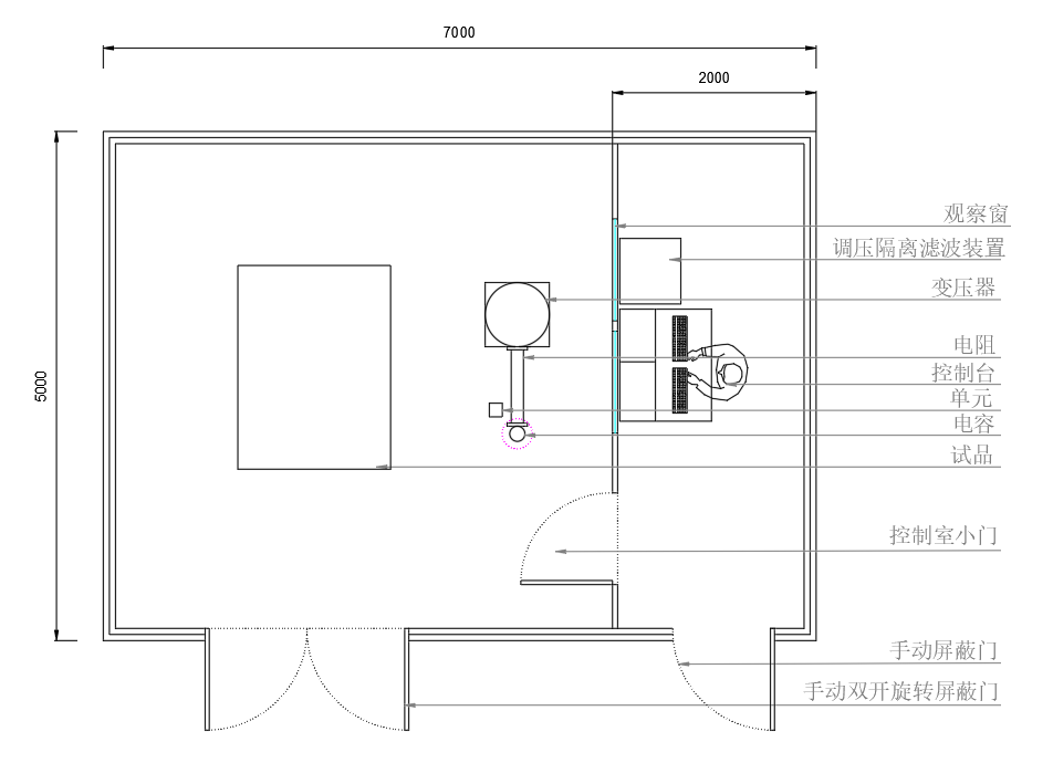 > 屏蔽室能夠滿足新產(chǎn)品實(shí)驗(yàn)室用的外施耐壓、局部放電的測定
